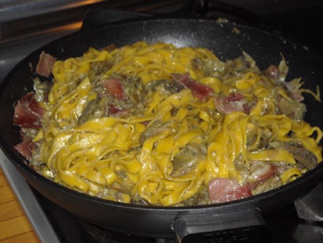 Tagliatelle carciofi e speck
