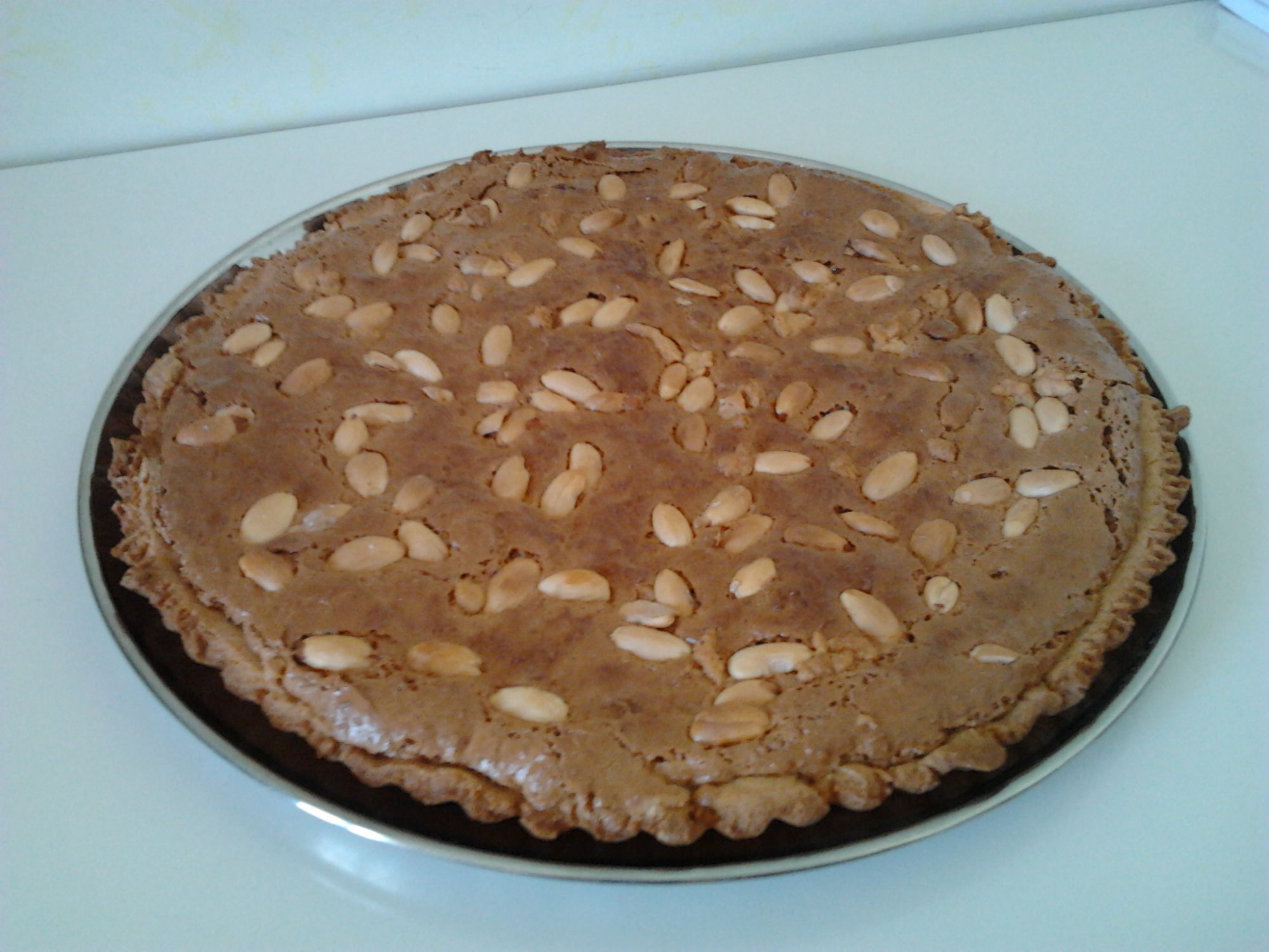 Prepare la pasta frolla. Tritare gli amaretti e metterli da parte. Montare gli albumi a neve e incorporarvi, con lame in movimento, lo zucchero a velo e gli amaretti tritati.