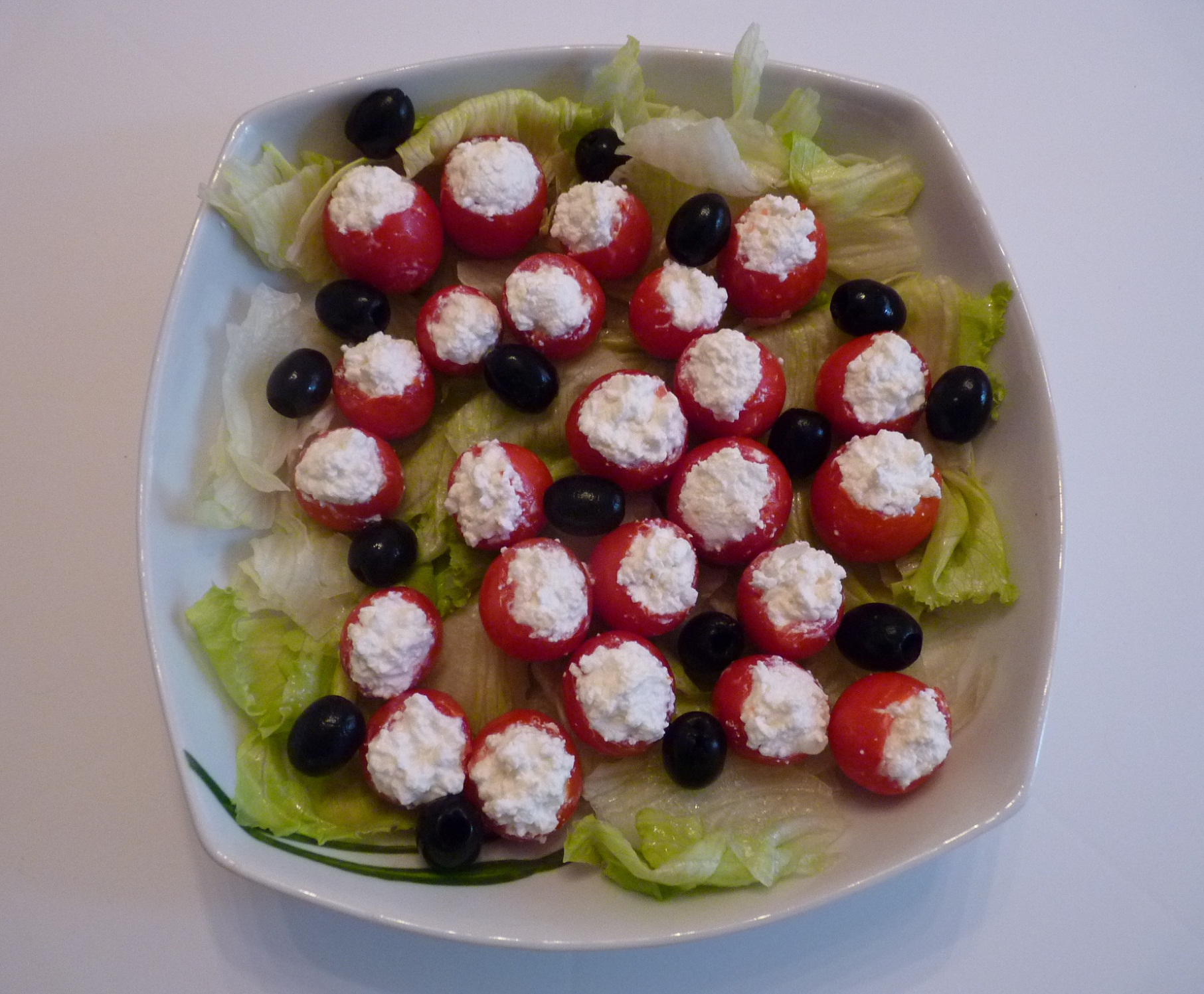 Mettereli su uno strato di insalata con contorno di olive