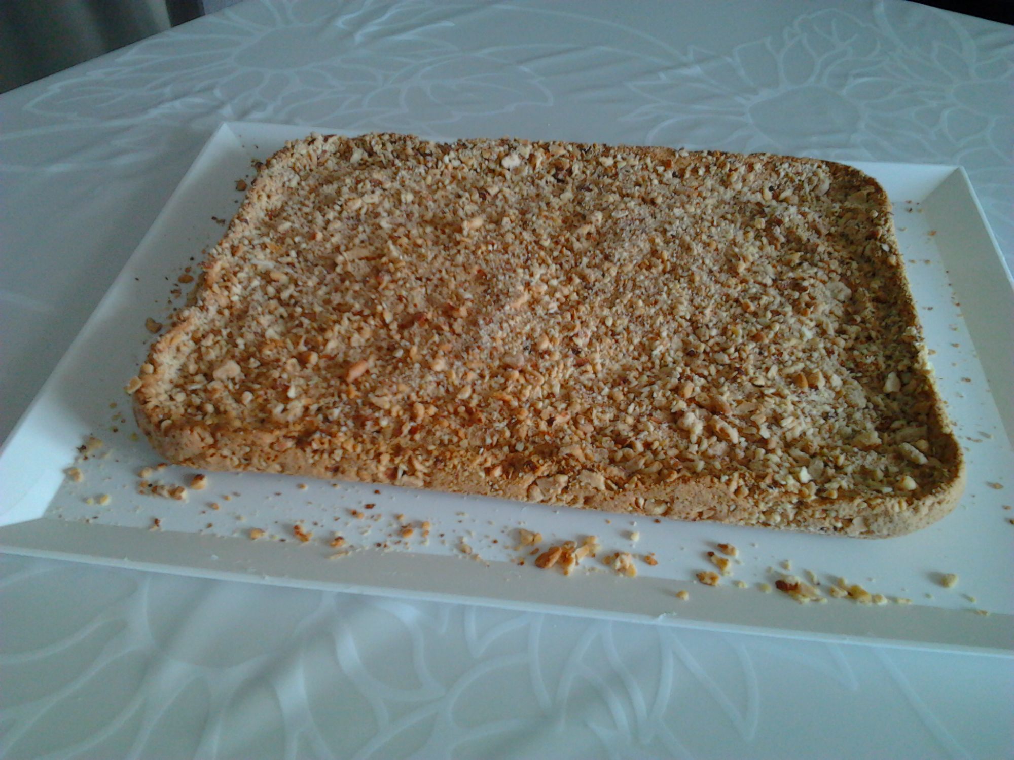 Mescolare i tuorli, l'uovo intero, lo zucchero e il burro. Unire la farina un pò per volta. Quando l'impasto risulterà compatto, versarlo in una teglia rettangolare, imburrata e infarinata. Cospargere sull'impasto i pinoli e le mandorle tritate.