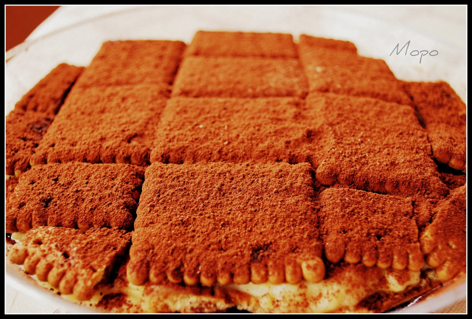 Far sciogliere il burro, aggiungere i tuorli, lo zucchero e il cognac e sbattere fino ad avere una crema omogenea. Intingere i biscotti nel caffè freddo non zuccherato e farne uno strato in una pirofila. Mettere uno strato di crema e un altro di biscotti. Continuare cosi come per il tiramisù e poi spolverizzare con cacao amaro. Lasciare riposare in frigo.