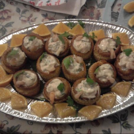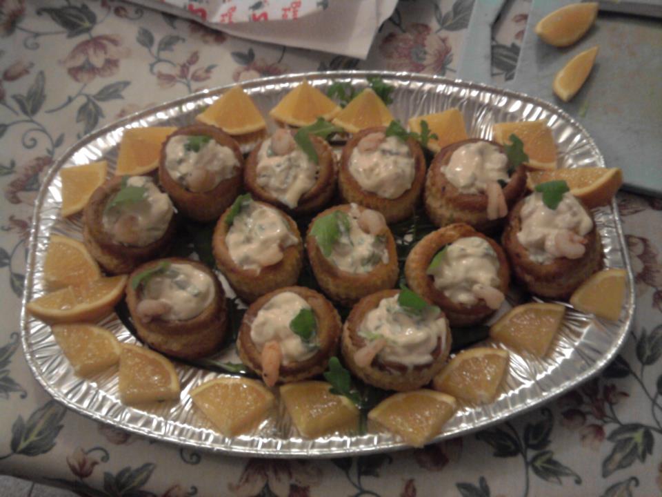 Voul au vent con cocktail di gamberi in salsa rosa e arancio