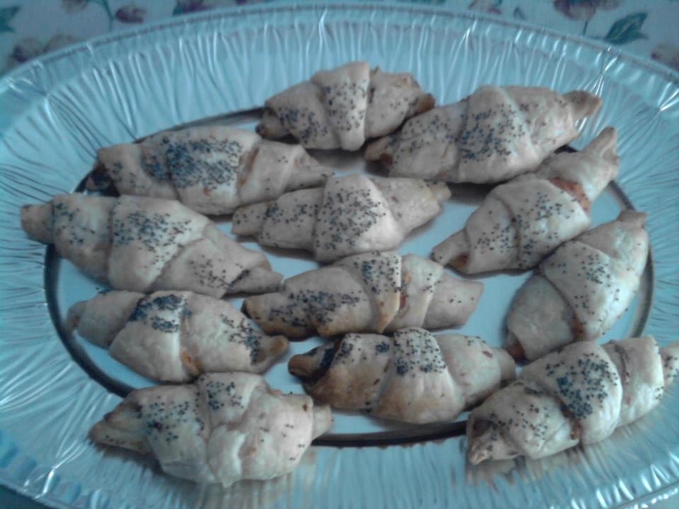 Adagiare i rotolini sulla placca del forno, distanziati l'uno dall'altro. Spennellarli con il tuorlo d'uovo e fare cuocere in forno a 180° per 30 minuti circa.