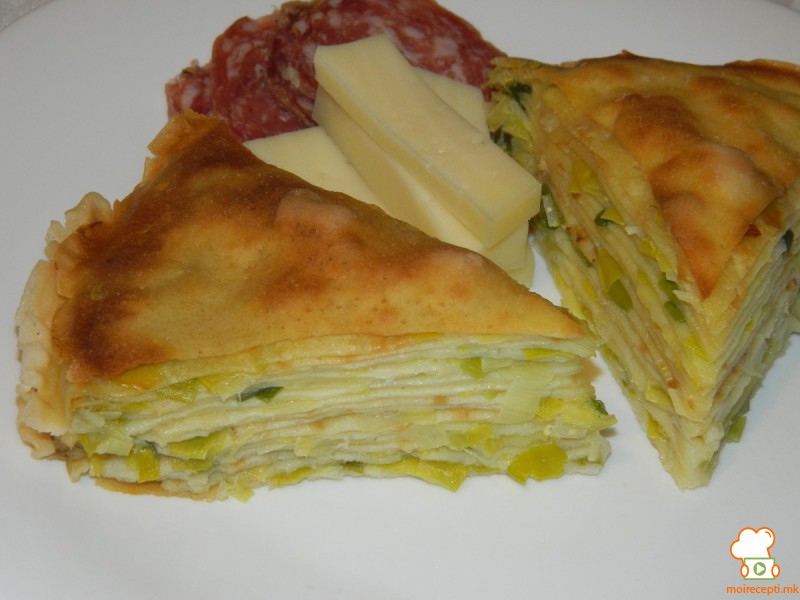 tagliuzzare i porri in una padella con un po 'di frittura olio per ammorbidire circa 5 minuti. Aggiustare di sale e togliere dal fuoco. Aggiungere l'uovo, mescolare e iniziare filovanje di frittelle.