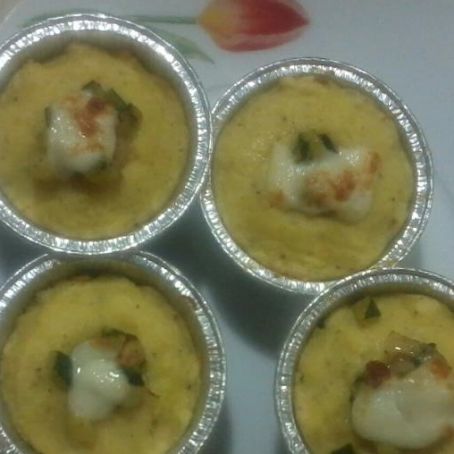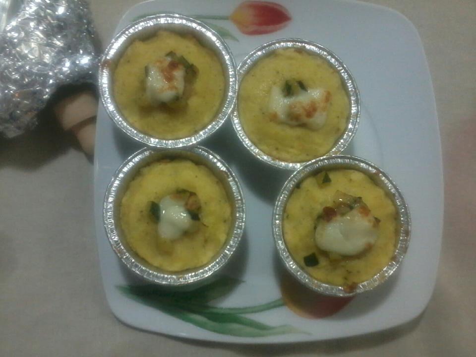 Prendere degli stampi in alluminio, mettere un pò di composto ed aggiungere un pezzettino di formaggio e di prosciutto, Ricoprire con un altro pò di impasto, continuare fino ad esaurire l'impasto.