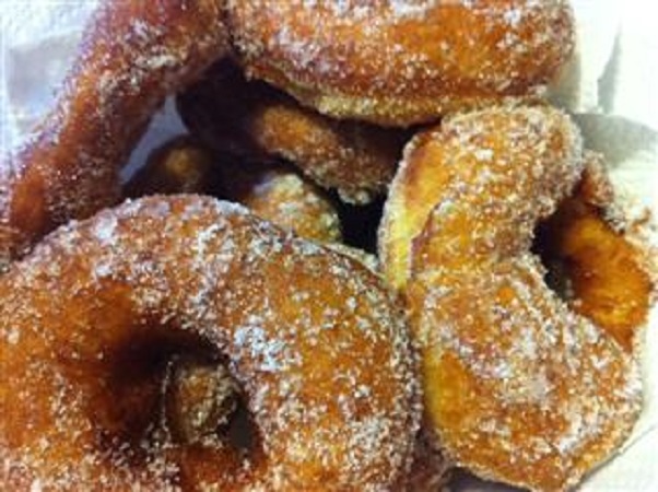 Man mano che si lavora, coprire con panni leggeri ma caldi le ciambelle già pronte, per far sì che l'impasto non si raffreddi troppo e per agevolare la seconda lievitazione; trascorsi circa 45 o 50 minuti dal termine di questa operazione si può procedere alla cottura. Versare in una padella capiente almeno un litro di olio di semi, preferibilmente di arachidi, e quando è ben caldo farvi friggere le ciambelle, che dovranno assumere un bel colore dorato. Estrarle con due forchette facendo sgocciolare tutto l'olio possibile, posarle sulla carta assorbente e quindi passarle ancora calde da ambo le parti su un piatto pieno di zucchero.