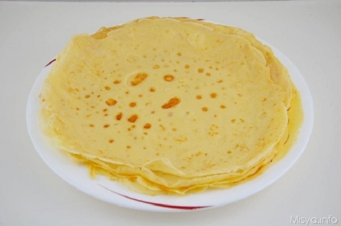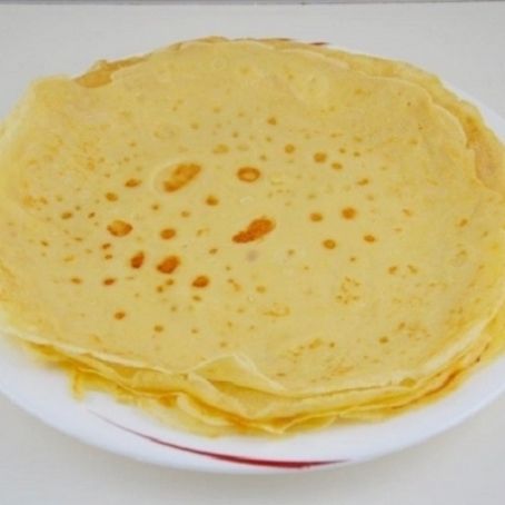 appena pronta, toglietela dalla padella facendola scivolare su di un piatto, (6) e continuate così anche per le restanti crepes, adagiandole una sull’altra a mano a mano che saranno pronte.