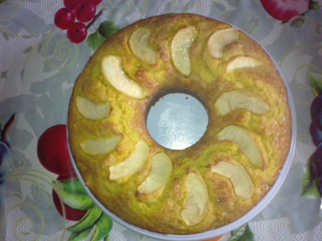 Sbattere le uova con lo zucchero, aggiungere il burro fuso, un pizzico di sale, la farina ed il lievito. Amalgamare bene e versare il composto in una tortiera imburrata ed infarinata. Sbucciare le mele, tagliare ogni mela in 4 fette e metterle in una pentola con acqua e zucchero. Porre sul fuoco e appena inizia a bollire, spegnere e versare sulla superficie della torta. Spolverizzare con lo zucchero semolato ed infornare a 180 gradi per 40 minuti. Lasciar raffreddare, sformare e spolverizzare la superficie con lo zucchero a velo.