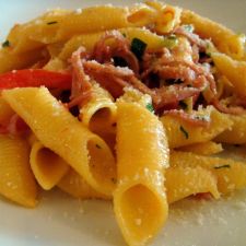 Rigatoni con zucchine e speck