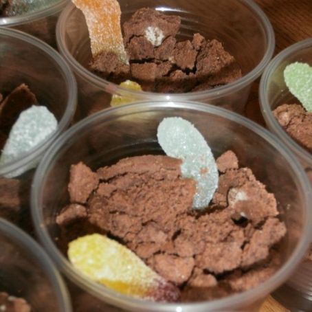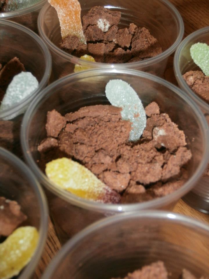 Versarlo nei bicchieri e farlo raffreddare un po', dopodichè sbriciolarci su un po' di biscotti e mettere in bella vista i "vermetti".