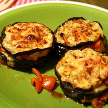 Disponete le fette di melanzane grigliate sul piano di lavoro ben allargate, salatele, conditele con poco olio, adagiatevi sopra poca mozzarella tritata e arrotolatele. Trasferite gli involtini di melanzane su di una placca da forno rivestita di carta da forno leggermente unta, ungete e salate anche la superficie degli involtini. Cospargete gli involtini con del parmigiano grattugiato.