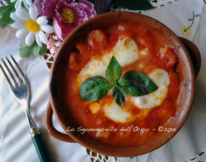 In una pentola a parte cuocete gli gnocchi in acqua bollente salata e scolateli appena salgono a galla, quindi versateli nel sugo che avrete posto in una pirofila.