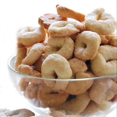 Passare le ciambelline nello zucchero semolato, solo da un lato, e disporle in una teglia foderata di carta da forno.