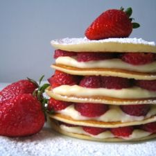Mettere nel piatto di portata una pila di pancakes, passare sopra un filo di sciroppo d'acero e decorare con frutta a piacere.