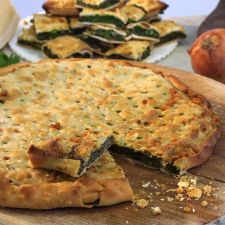 Fate cuocere in forno già caldo per 30 minuti circa, poi cospargete la superficie con il lardo tagliato a striscioline e continuate la cottura per altri 10-15 minuti circa. A cottura avvenuta, lasciate intiepidire o raffreddare e servite l'erbazzone tagliandolo a fette o losanghe.