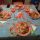 Preparrare la salsa rosa, aggiungerci il brandy, l'isalata tagliata finemente e i gamberetti sbollentati tenendo alcuni da parte per le canapè decorare con l'arancio.