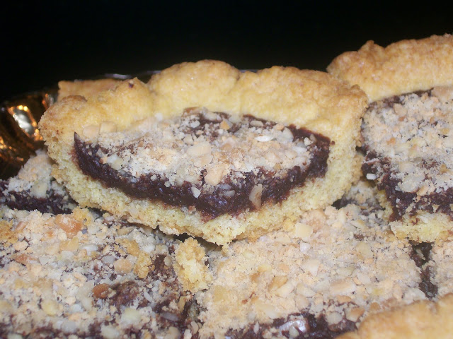 Fare la pasta frolla. montare a neve i bianchi d uovo, tritare le mandorle precedentemente tostate e unire tutti gli altri ingredienti dell impasto. Dopodicché stendere la frolla su di una teglia rotonda e cospargerla con il contenuto a base di cioccolato e mandorle. Infornare a 170○C per 40 minuti