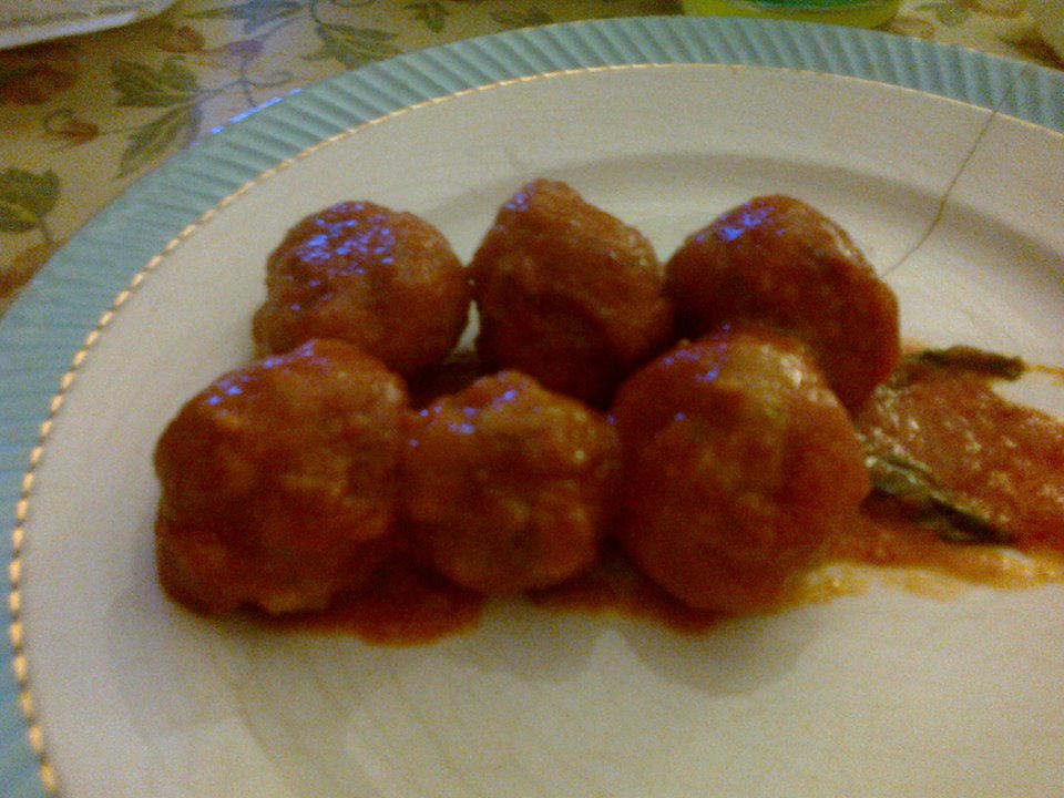 Preparare le polpette e impanarle nel pane grattato, metterle a rosolare nell'olio e quando sono appena dorate fuori aggiungere il sugo.