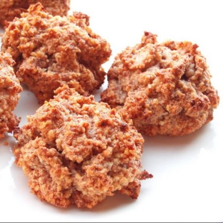 Sopra la placca appena imburrata, disponete mucchiettini dell'impasto, distanziati tra loro, pasate in forno piuttosto basso (140°-160°) di calore e lasciate cucinare per circa 25 minuti. Servite i biscottini freddi.