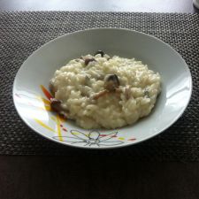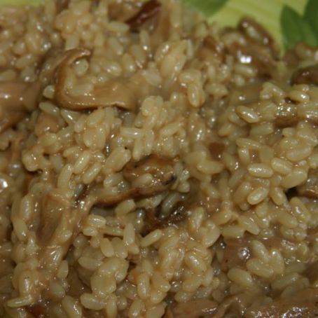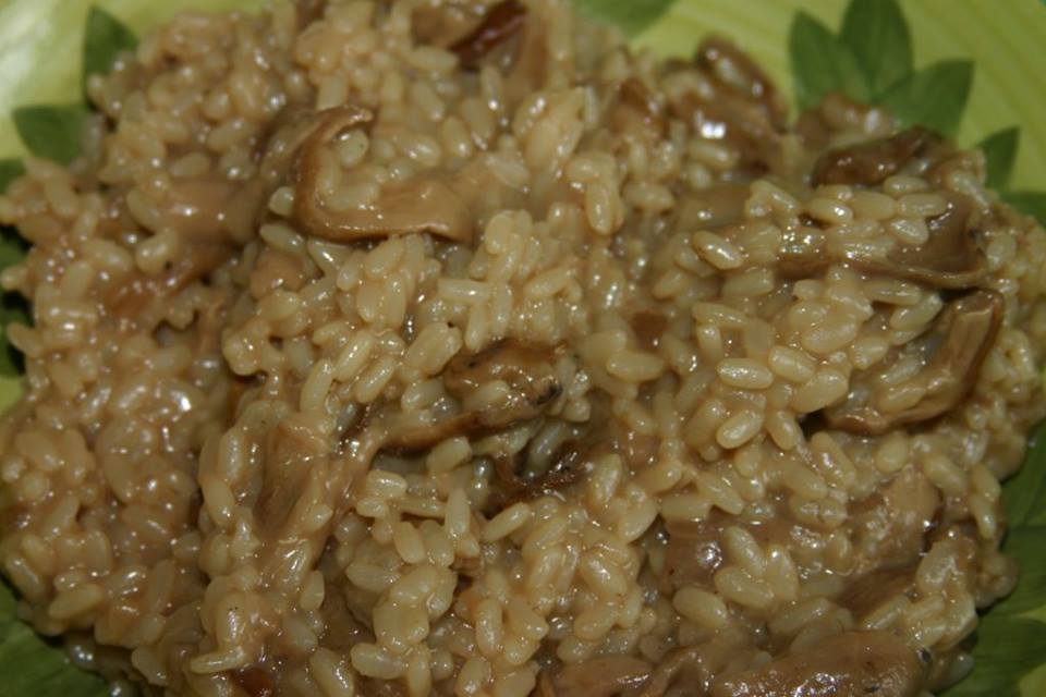 Prima che tutta l’acqua dei funghi si sia ritirata versare il riso e tostarlo per 10 minuti.
