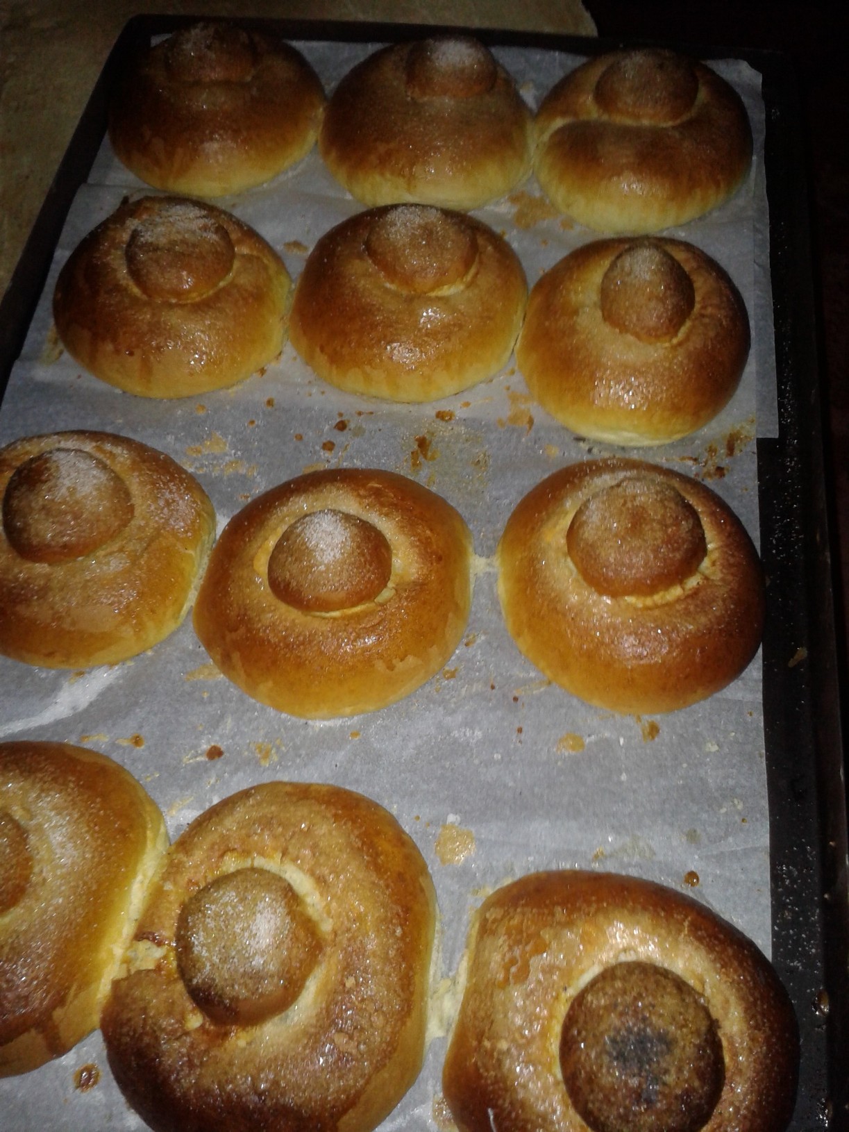 Formare delle palline grandi quanto un pugno e disporle nella teglia coperta da carta forno a lievitare per un'altra ora. Formare delle palline più piccole e metterle da parte.
