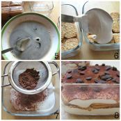 Foderare una teglia in vetro pirex con della carta forno. Far scaldare il latte e spegnerlo prima dell'ebollizione. Versarlo in una ciotola e passare velocemente i biscotti nel latte ad uno ad uno; distribuirli nella teglia, uno accanto all'altro.