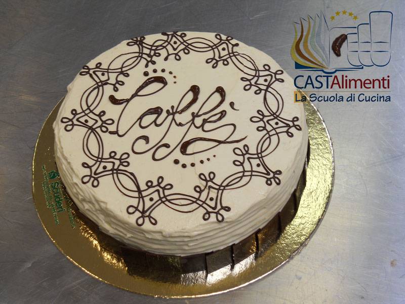 e coprite il tutto con l’altra metà della base, la cui superficie inzupperete con la restante bagna (13). Ricoprite tutta la torta con la crema al caffè aiutandovi con una spatola (14). Con la crema che avanzerà, riempite una sac-à-poche e decorate la torta realizzando delle roselline di crema, sulle quali poggerete dei piccoli cioccolatini a forma di chicco di caffè. Decorate il perimetro inferiore della torta con della granella di nocciole (15) e ponete la torta in frigorifero fino al momento di servirla.