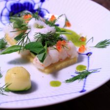 Preparate la salsa: sgusciate i gamberi e lessate i gusci per 20 minuti con la lisca di sogliola e 1/2 l di acqua, al termine filtrate il brodo. Tritate la polpa dei crostacei A, amalgamatela con 40 g di burro e tenete in frigorifero; fate fondere il restante burro, unite la farina setacciata e, quando e colorita, versate 2 mestoli di brodo di pesce.