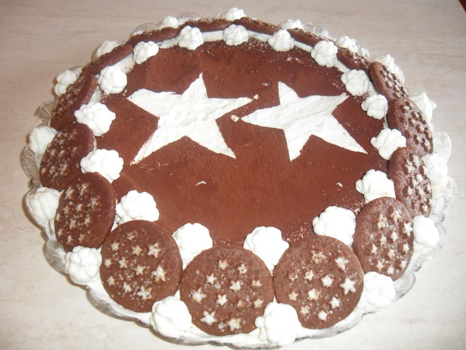 Inzuppare i biscotti nel latte e disporli sul vassoio. Coprirli con metà della panna ed uno strato di crema alle nocciole. Formare un altro strato di nocciole, un altro strato di crema e infine ricoprire con la panna rimasta.