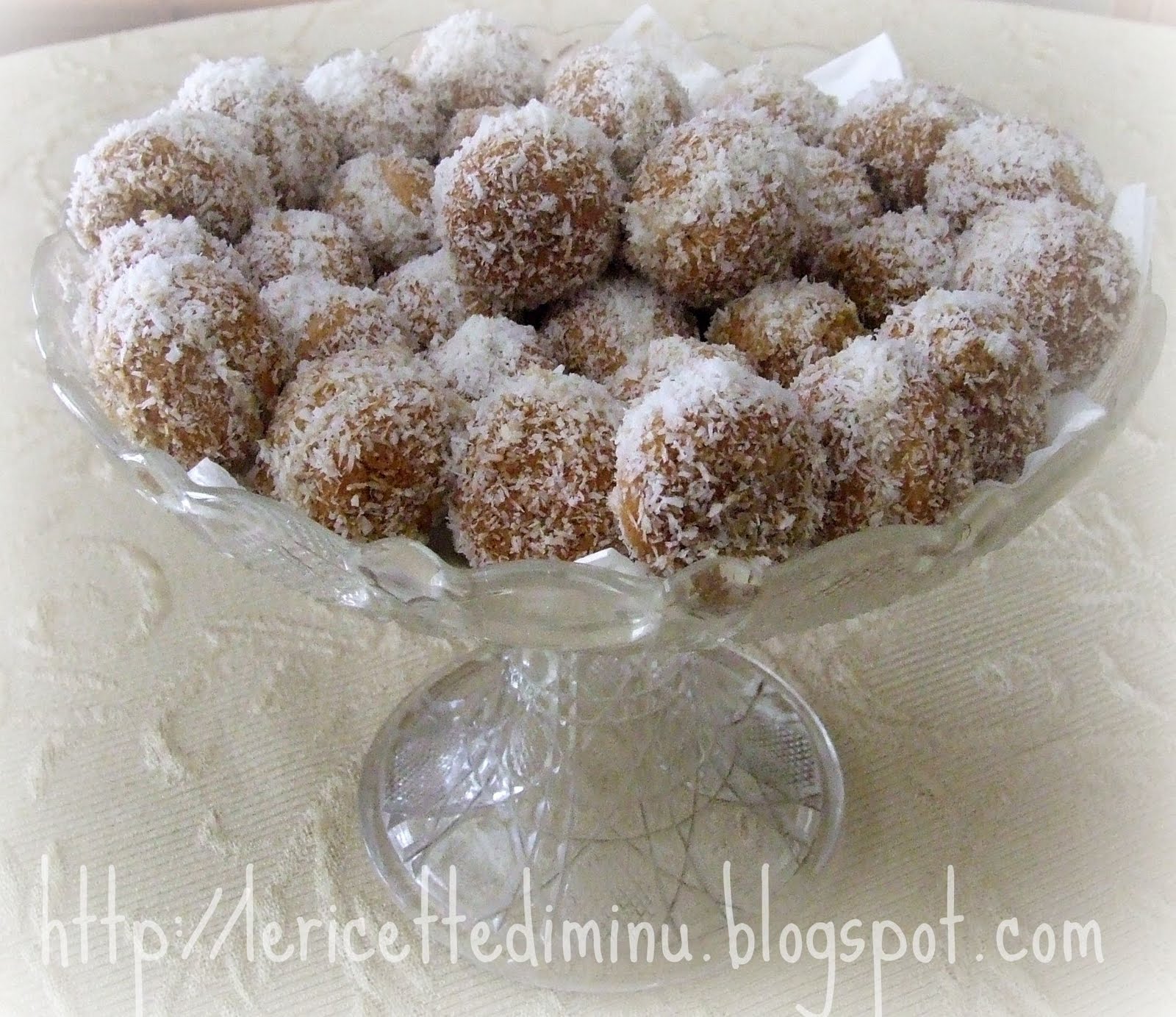 sciogliere il cioccolato a bagno maria, incorporare lo zucchero il cocco ed il rum e legare con l'uovo. Formare delle palline e rotolarle nel cocco. Far riposare in frigorifero un paio d'ore.