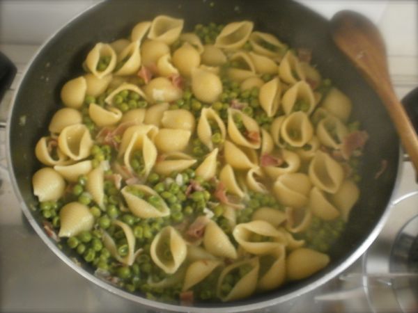 Conchiglie piselli e pancetta