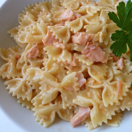 Scolate le farfalle al dente, versatele nella padella con il sugo al salmone e amalgamare il tutto dolcemente.
