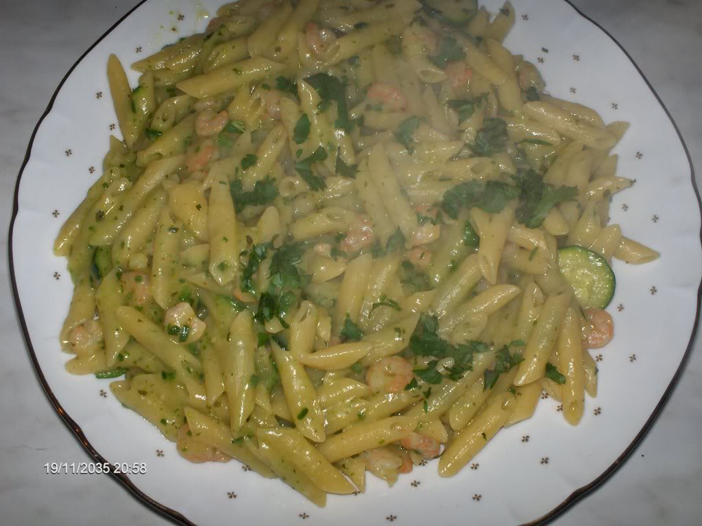 Nel frattempo far cuocere la pasta in abbondante acqua salata, scolarla al dente e farla saltare in padella insieme al sugo per un paio di minuti prima di servire la pasta zucchine e gamberetti nei piatti.