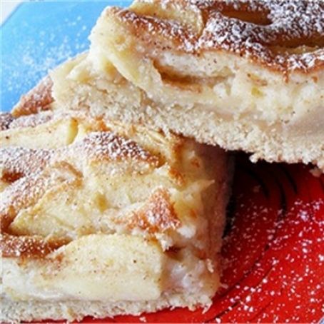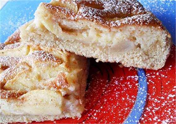 Versare metà composto nella teglia ricoperta da carta da forno e adagiare uno strato abbondante di fette sottili di pere e chiudere con l’altra metà di impasto.