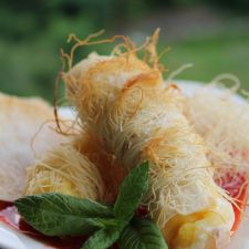 Incidere la pasta a metà nel senso della larghezza, creando due mezzelune, quindi ricavare circa 12 rettangoli.
