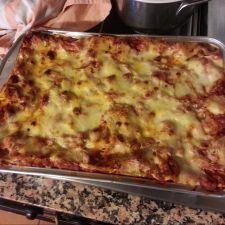 Formare più strati a seconda della teglia e fino ad esaurire tutti gli ingredienti. In un pentolino mischiate il ragù con un po' di besciamella e terminare le vostre lasagne con uno strato sottile e leggero con il composto ottenuto.