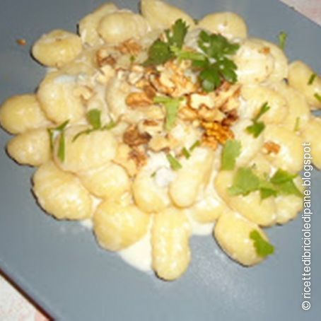Spegnete ed aggiungete, il trito di noci. Cuocete gli gnocchi, scolateli e conditeli con la salsa preparata.