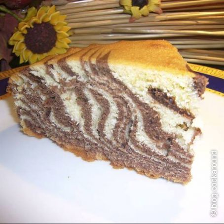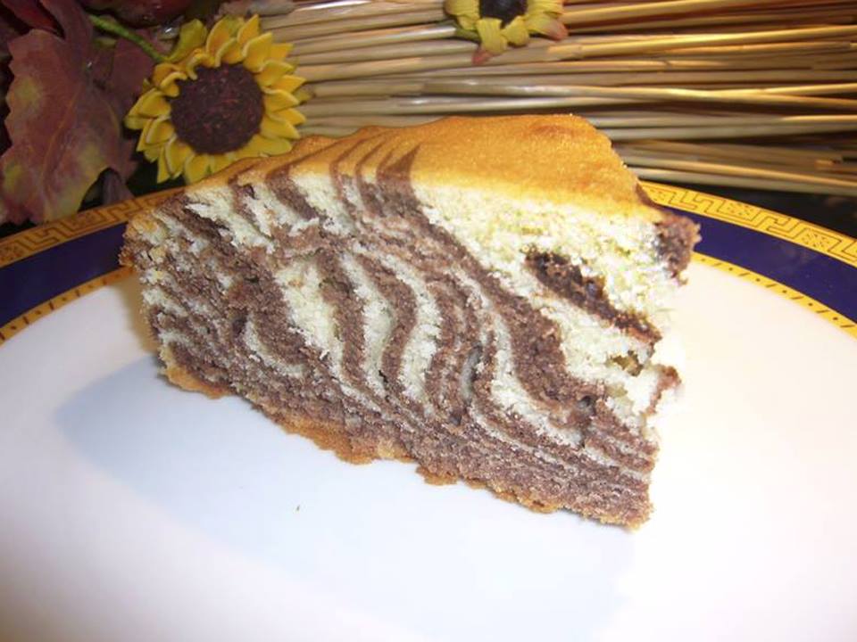 Sciogliere a bagnomaria il burro o in alternativa servirsi del microonde. In una ciotola, battere le uova con lo zucchero, unire la farina setacciata, la vanillina e il latte a filo. A questo punto, aggiungere burro sciolto e lievito setacciato. Dividere il composto in due parti uguali, imburrare ed infarinare una tortiera, aggiungere ad uno dei due composti il cacao. Adesso, servendoci di due mestoli, cominciamo a mettere il composto nella tortiera. Partendo dal composto chiaro, mettiamo un mestolo di composto al centro della tortiera, adesso metteremo un mestolo di composto scuro al centro di quello chiaro, poi un altro chiaro al centro di quello scuro e così fino ad esaurimento dei due composti. Infornare a 180 °C per 45 minuti circa.