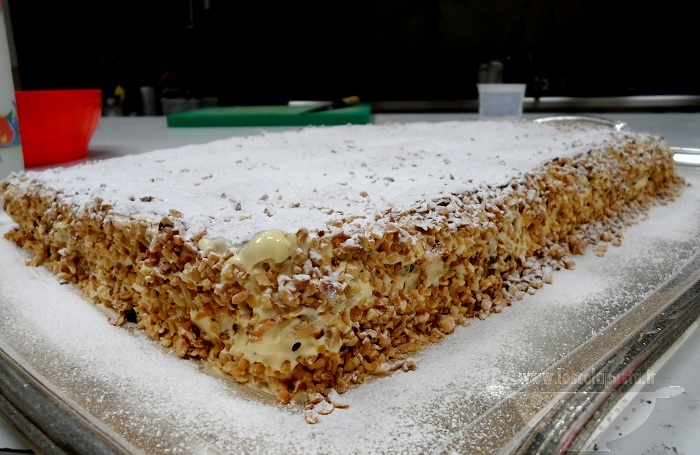 Una volta raffreddata, fare uno strato di mascarpone e nutella, poi rivestire con il pan di spagna ed infine con la crema chantilly.