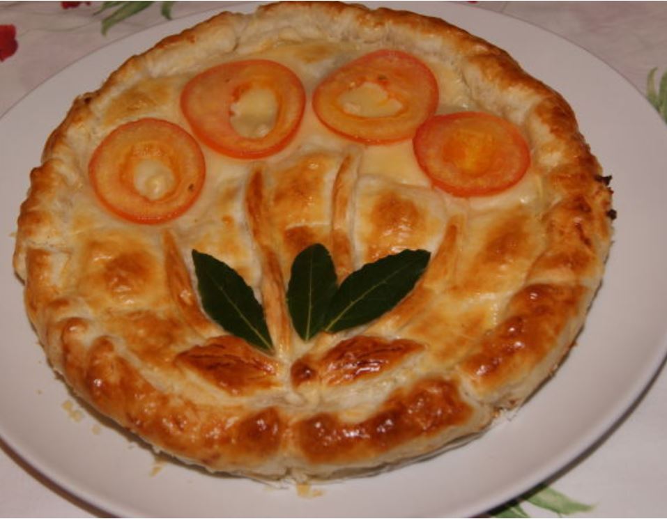 Con un foglio di pasta sfoglia foderare una tortiera imburrata e infarinata.
