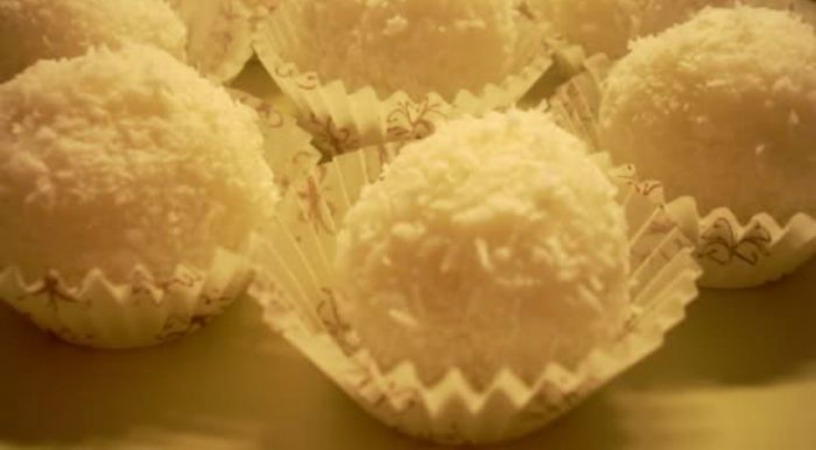 Far bollire la panna, aggiungere il cioccolato bianco a pezzi e far sciogliere. Lasciare il composto in frigo finchè nn si solidifichi.