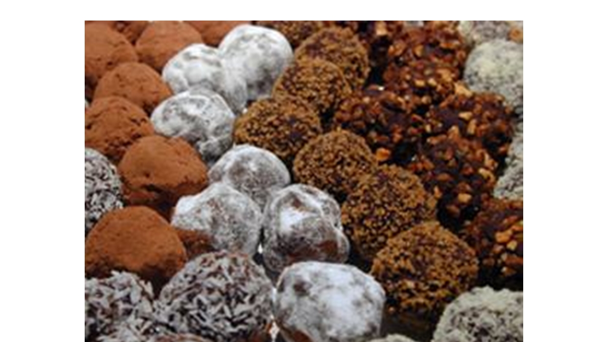 formare le palline,rotolare le palline un po’ nel cocco un po’ nelle noccioline trifolate altre nel cacao amaro.