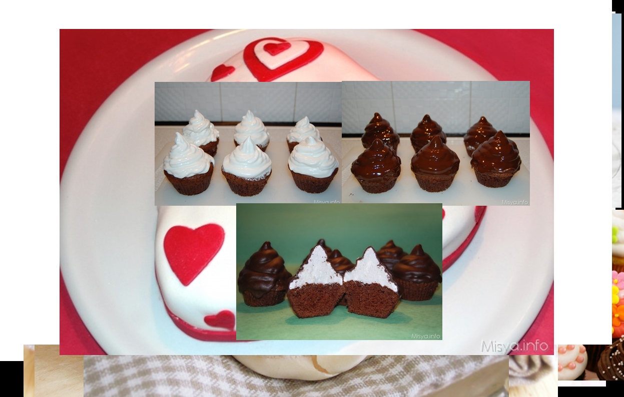 Mettete la meringa nella sac a poche e decorate subito ogni cupcakes disegnando una montagnetta sulla loro superfici. Mettete quindi i cupcakes in frigo a raffreddare