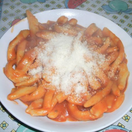 Mentre il sugo termina la sua cottura, cuocete i maccheroni in acqua salata (impiegano circa 20 min.). Una volta cotti scolateli e conditeli col sugo, (da cui avrete tolto e messo da parte la carne, che sarà il vostro secondo) spolverateli con del formaggio grattuggiato e serviteli!