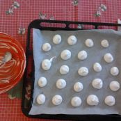 Aiutandosi con due cucchiaini distribuire le meringhe in una teglia foderata di carta forno.