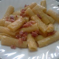 Aggiungere alla pancetta un mestolo di acqua di cottura e il parmigiano a piacere, amalgamando il tutto.