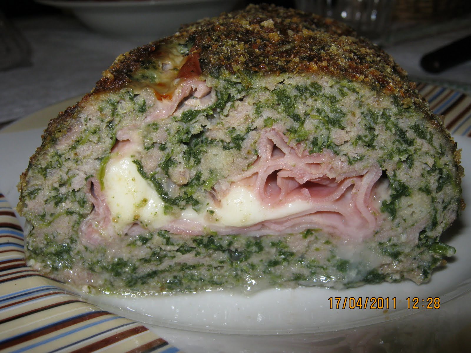 Arrotolate il polpettone su stesso aiutandovi con la carta forno. Passate il rotolo nelle rimanenti uova sbattute leggermente salate e poi nel pangrattato. Adagiatelo in una pirofila unta di burro, versatevi sopra un po' di olio e il rimanente burro a pezzettini. Forno a 200 per circa 1 ora. Di tanto in tanto irroratelo con il sugo che si sarà formato durante la cottura. Servitelo con un contorno di patatine arrosto. E' altrettanto buono servito freddo.