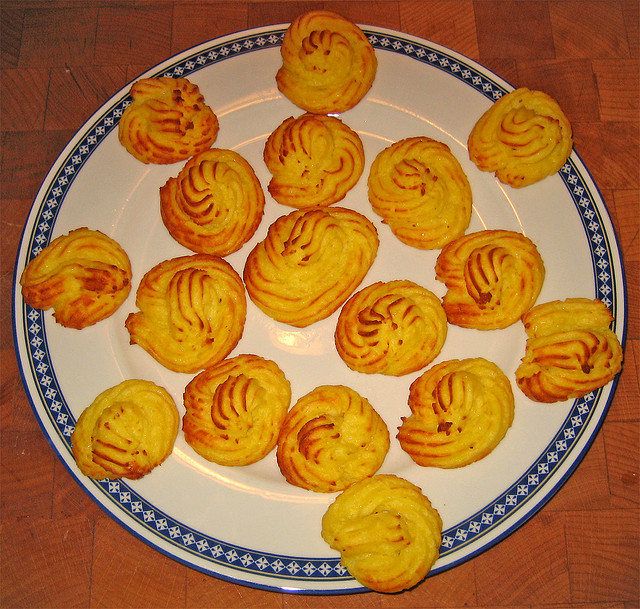 Fate sciogliere lo zafferano nel vino bianco e unitelo alla purea di patate, insieme al tuorlo, al lievito , sale e pepe.