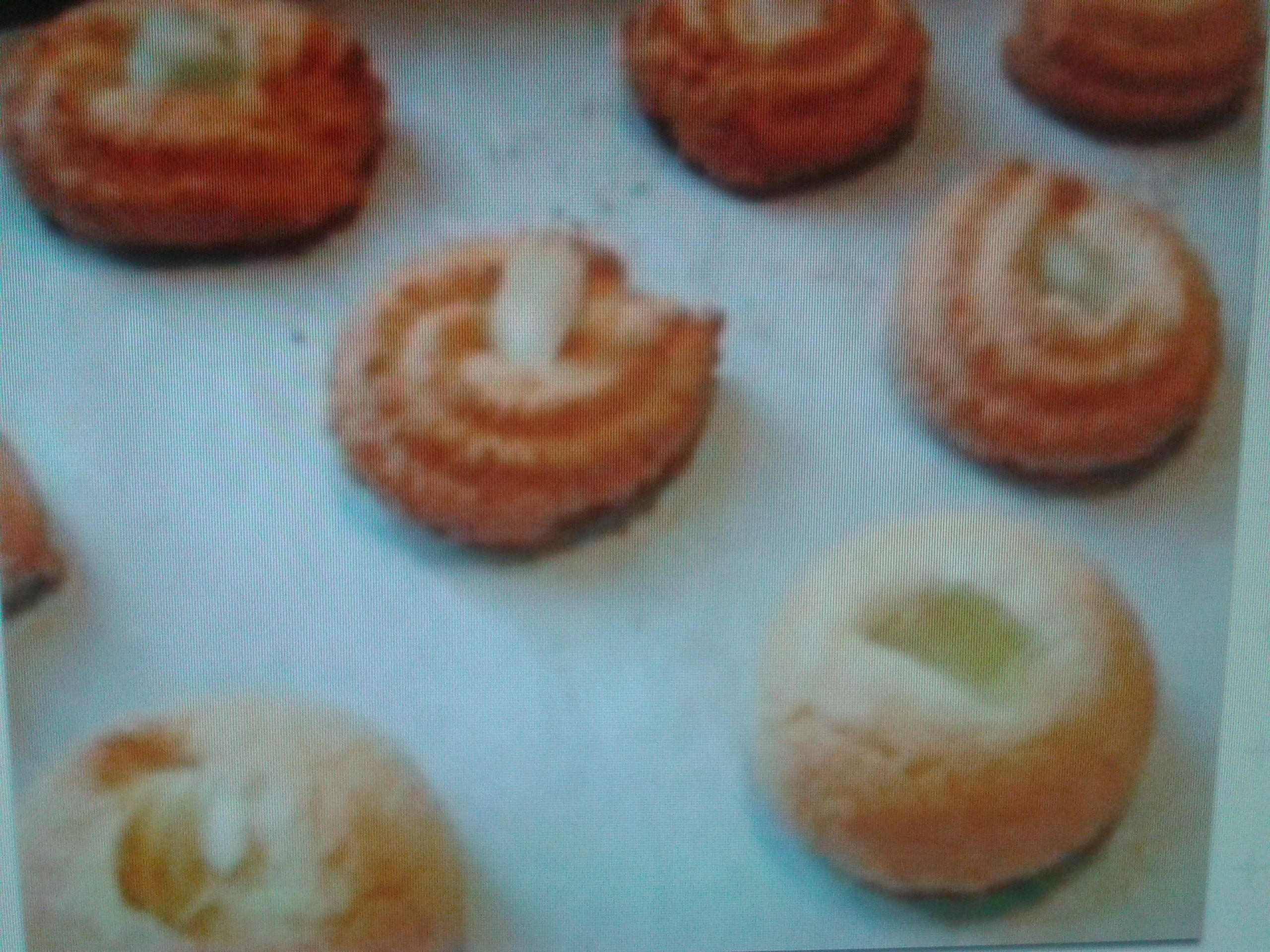 Formare delle palline leggermente schiacciate ed aggiungere al centro una mandorla o frutta candita.