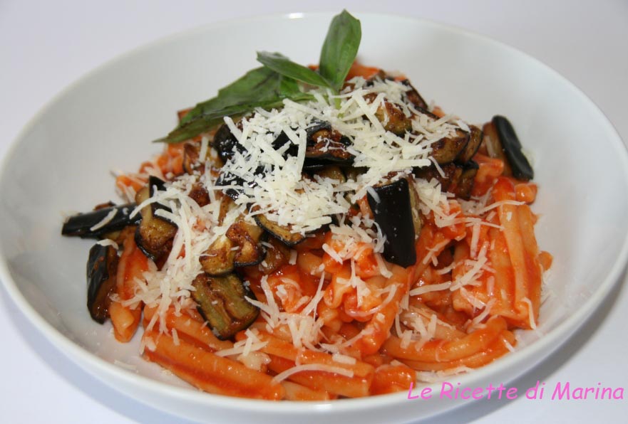 5) Scolate la pasta al dente, unitevi la crema di ricotta, rovesciate il tutto nella pentola con il sugo di pomodori e melanzane e fate insaporire per qualche minuto.